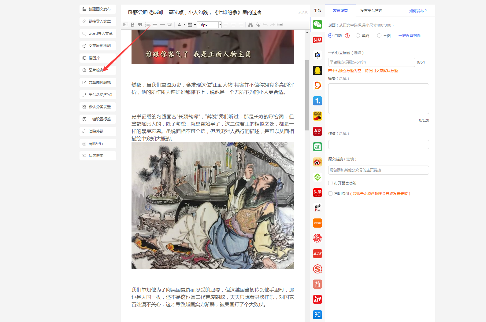 鍦ㄥ彂甯冩枃绔犲墠錛屽彲浠ラ氳繃鍥劇墖媯嫻嬪姛鑳斤紝媯嫻嬫槸鍚︽湁寮傚父鍥劇墖錛屼互姝ゆ彁楂樻枃绔犲彂甯冩垚鍔熺巼銆?