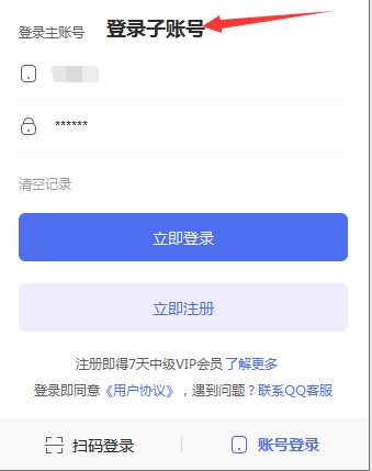 鍦ㄧ櫥褰曟鍒囨崲鍒板瓙璐﹀彿鐧誨綍錛岃緭鍏ヤ富璐﹀彿璁劇疆鐨勭敤鎴峰悕鍜屽瘑鐮佺櫥褰曞嵆鍙紝濡備笅鍥炬墍紺?