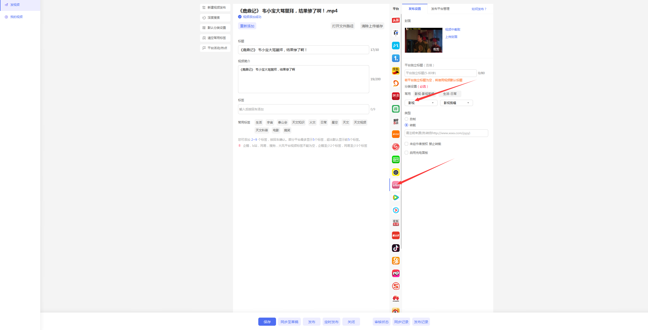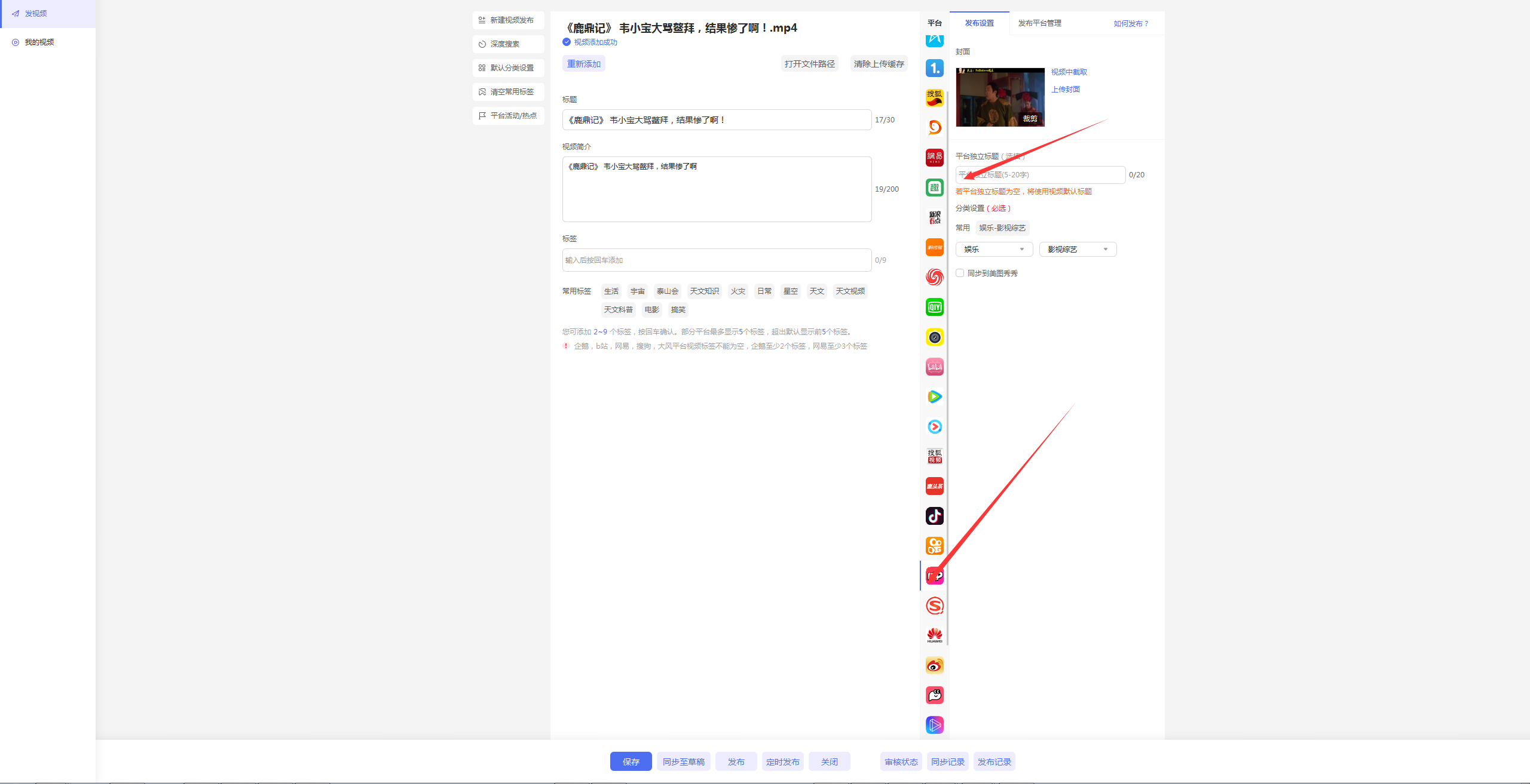閬囧埌璇ラ棶棰樺彲浠ラ氳繃璐﹀彿妯″潡榪涘叆璇ュご鏉″彿瀵瑰簲鐨勭綉欏電錛岀劧鍚庣偣鍑誨彂甯冭棰戣繘鍏ュ彂甯冭棰戦〉闈?