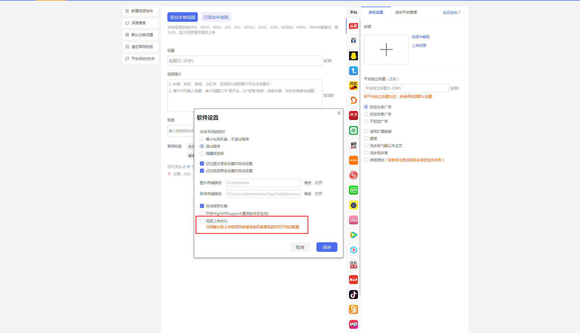 瑙e喅鏂規硶濡備笅錛氬湪銆愯棰戝彂甯冦戠晫闈腑鍙充晶銆愬鉤鍙拌緗戦」涓壘鍒般愬皝闈㈣緗戞爮錛屾牴鎹彁紺虹偣鍑匯愬帇緙┿戞寜閽紝鍘嬬緝銆愬皝闈㈠浘鐗囥戣嚦銆?M浠ヤ笅銆戝嵆鍙紱