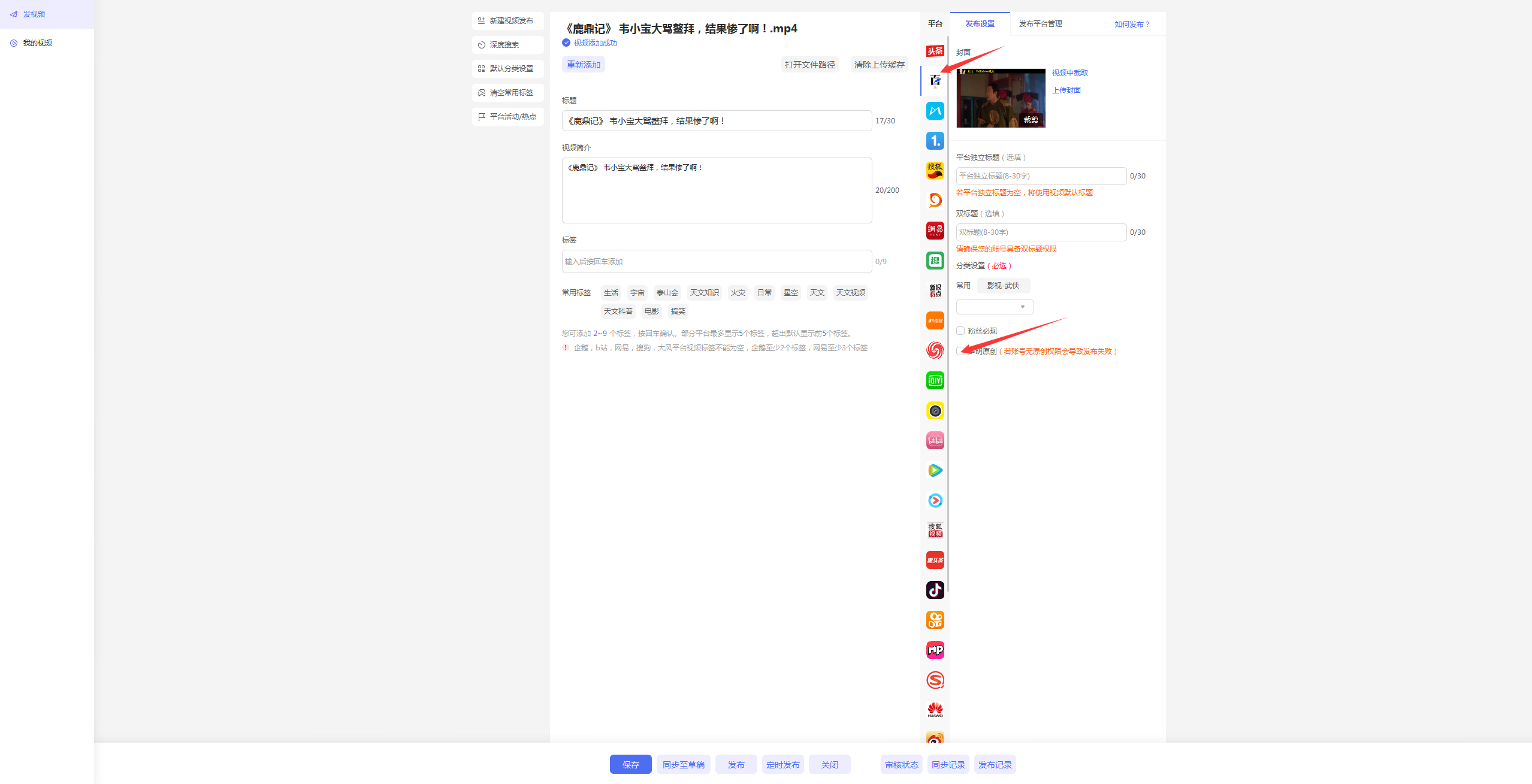 榪欐槸鍥犱負鎮ㄧ殑澶存潯鍙鋒病鏈夎棰戝師鍒涙潈闄愬鑷寸殑錛屽彇娑堝師鍒涜緗嵆鍙紝鎸変笅鍥炬墍紺哄彇娑堝師鍒涜緗紝鐒跺悗鐐瑰嚮淇濆瓨錛岄噸璇曞彂甯冨嵆鍙?