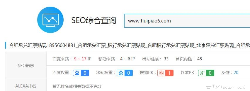 為使網站為我們帶來Z大的營銷價值,多做關鍵詞在首頁這個思路是永遠正確的,為此我們公司推出整站優化業務,今天云無限小編為大家分享合肥承兌匯票整站優化案例,希望對大家有所幫助。