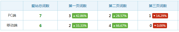 這個統計的是本站有指數的關鍵詞前100名排名情況。由此可見網站的關鍵詞數量還是不少的,雖然客戶只做了三個關鍵詞,但是整站優化帶來的效益是很明顯的。
